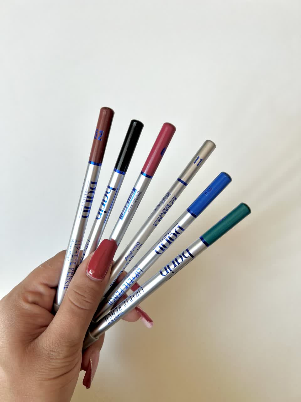 مداد خط لب و چشم بارین ویژگی مداد چشم و مداد لب بارین: برند: بارین کشور: ایران ضد حساسیت ماندگاری بالا با رنگهای جذاب و متنوع برجسته و درشت تر نشان دادن لب بدون پوسته شدن روی لب جلوگیری از خشکی لب دارای بافت نرم